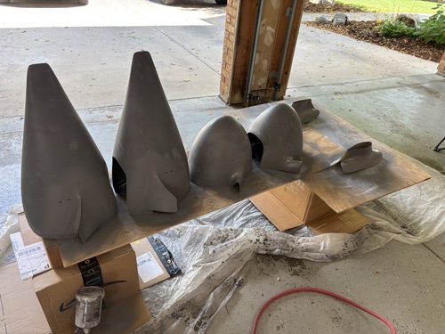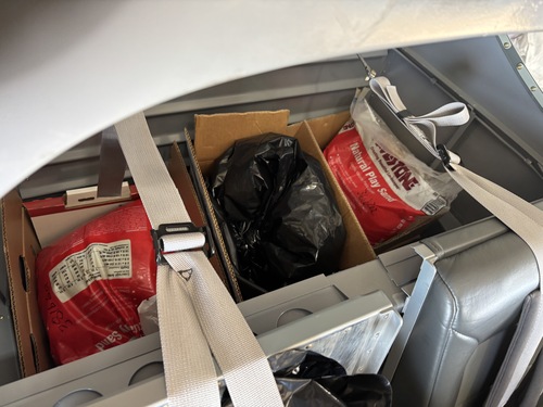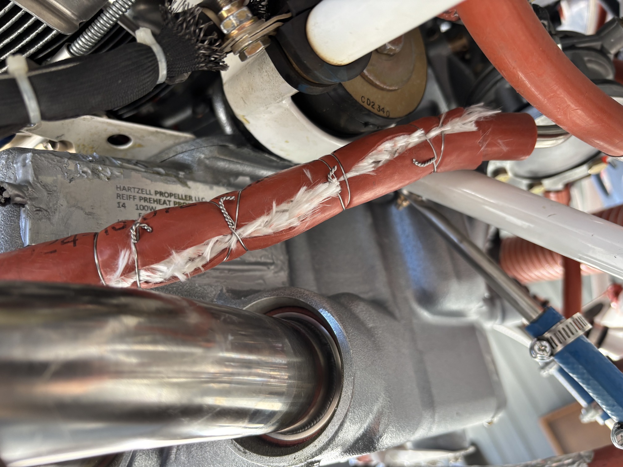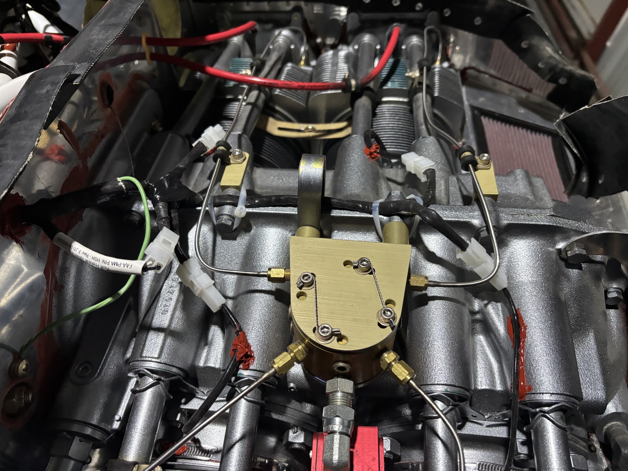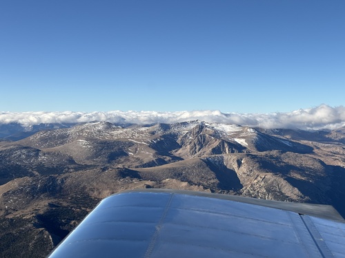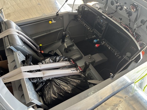The #4 cylinder temps have been quite low compared to all of the others, including #2, so I cut off part of the baffle in front of #2. This didn't make much of a change in temps. I eventually checked the CHTs with an IR temp probe after a flight and compared them with my CHT temps on the engine monitor to make sure they were accurate, and they were. After that, I completely removed the baffle in front of #2 and now my #2 vs #4 temps are much more similar in cruise. To make installing the lower engine cowl easier, I enlarged the holes in the lower cowl and also cut off a bit of the gear leg fairings. One of the screws for the intersection fairing broke off in the nutplate on the bottom of the cowl, so I removed the nutplate and installed a new one. On a weekend when I couldn't fly (because of the air show), I took home the wheel pants and sanded/primed them to cover up the areas that were unfinished. I also primed the upper intersection fairings. Here's how I simulated extra weight in the plane when testing aft CG and gross weight. Bags of sand from Home Depot inside of heavy duty trash bags secured into the passenger seat. Same thing for the 100lbs in the baggage compartment. After settling on the right size for my rudder trim tab, I permanently installed it with Proseal. This gets the ball centered at 23" and 2300 RPM cruise power settings/speeds. I installed a Reiff engine preheat system for those cold mornings. It has a heated band around the base of each cylinder plus a heater on the oil sump. I bought a Switcheon remote electrical switch so I can turn it on from home if I am planning to fly. I routed the plug-in for the system to the oil door. I didn't take an up-close picture, but I also installed a Koger sun shade in the canopy for those sunny days when the sun is beating down. I like it a lot. Finally, my engine idles roughly, particularly when it's hot after a flight. One suggestion I had read was to apply extra insulation to the fuel lines forward of the firewall (the idea is that the fuel gets hot and boils in the lines). So I did that. I added another layer of firesleeve to all of the exposed fuel lines and then secured it with safety wire. Then I applied a layer of metal tape to all of them to help with radiant heat. Incidentally, you can see the oil sump heater element in the background of this photo. This actually made a really big difference in the quality of the idle! It is very smooth, even after a flight. Interestingly, it also helped with my ability to run lean of peak. Throughout my testing period, I was able to get my fuel flows down to the 7.1-7.4 GPH range at cruise settings, but this was sometimes JUST lean of peak (not 50 degrees) and would still be a little rough. It seemed to vary a bit with outside temps and altitudes. After I insulated the fuel lines, I can now easily run down to 6.5 GPH (more than 100F lean of peak) without any roughness, although I still run in the ~50F lean of peak range, which is where the best fuel economy is found. I concluded my Phase I test period the other day. I have not found any adverse handling characteristics or significant problems to fix. All of the flight testing went well. With an aft CG, the plane is certainly more twitchy, but completely controllable and still easy to stall/land. It climbs like crazy even at max gross weight and 8,000' density altitude or higher. As a treat for finishing Phase I, I went out and did some sightseeing over the front range. It was beautiful. What an incredible little plane this is! At lean of peak, I can get nearly 6 hours of endurance at 155-160 knot true airspeed. I can easily climb to 14,000' or higher if desired. The only downside is that the plane is a little bit heavy with all of the nice avionics I installed I'm a big guy, so my useful load is on the tight side if I want to fly with someone else close to my size or weight.